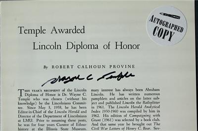 Wayne Temple served during World War II as a junior officer on General Eisenhower's staff. Following the war he enrolled in college, and by 1956 he had a Ph.D. in history and was teaching at Lincoln Memorial University. In 1964 he moved to Springfield and began a long career at the Illinois State Archives. Since then he has earned the reputation as being one of the nation's most knowledgeable Lincoln scholars. 'Doc' Temple authored scores of speeches, short articles, and research notes about Abraham Lincoln, as well as a half-dozen important volumes, with particular focus on Lincoln's military, religious, surveying, and domestic life.
