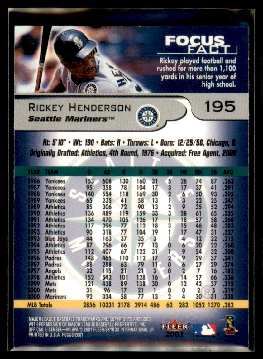 | 2001 Fleer Focus Rickey Henderson Seattle Mariners #195 - QTY |