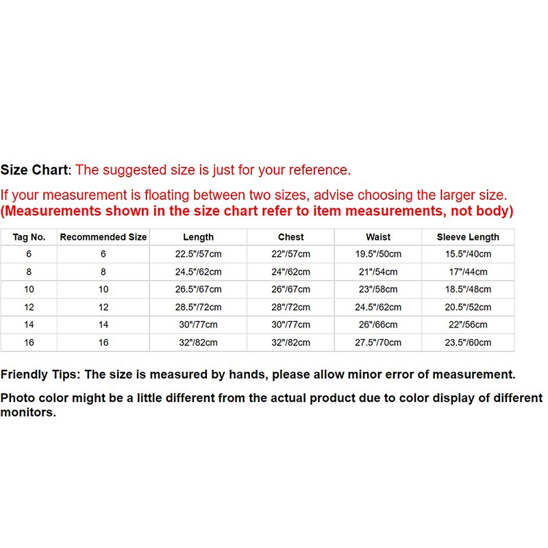 Size Chart: The suggested size is just for your reference. If your measurement is floating between two sizes, advise choosing the larger size. (Measurements shown in the size chart refer to item measurements, not body)
