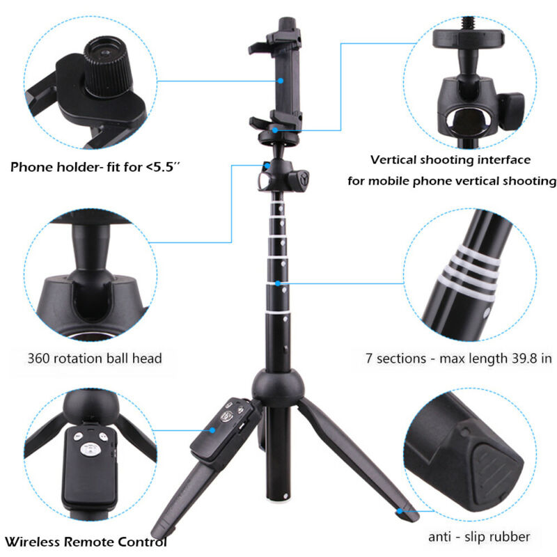 【Upgraded All-in-one Design】: Selfie Stick and Tripod in 1. Made of Aluminum alloy construction supporting Stands, corrosion resistance, it will not rust. More fasion,more convenient , More for peerless durability.
