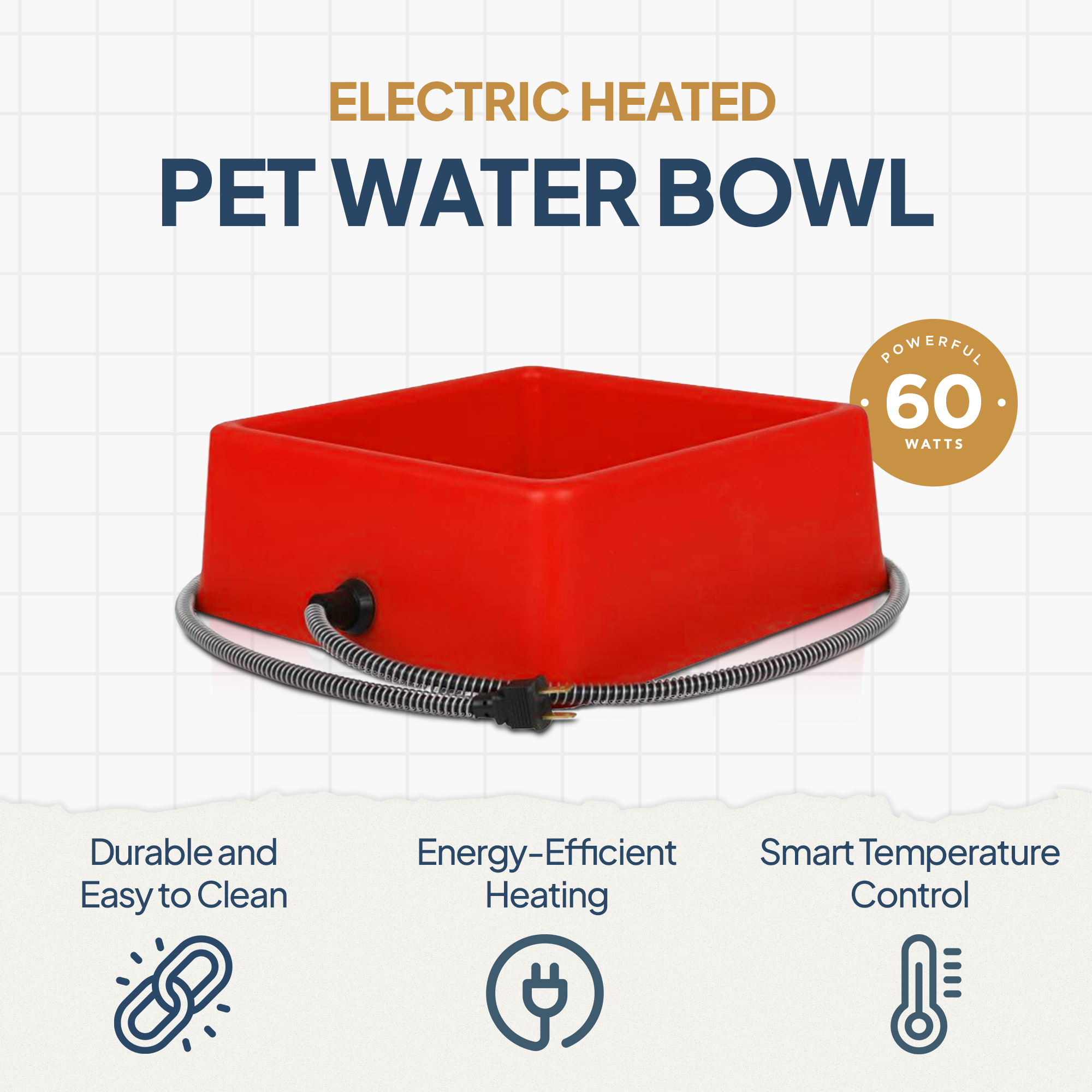 It offers an intelligent solution for winter care, featuring a thermostatically controlled design that automatically adjusts based on the temperature, sparing you from braving the cold to toggle it on and off. The generous 1.25-gallon water capacity not only accommodates multiple pets but also minimizes the frequency of refills, ensuring a consistent and warm water supply in freezing conditions. The inclusion of a heavy-duty anti-chew cord protector adds an extra layer of safety, deterring pets from nibbling on the power cord. With a robust 60-watt power, this electric pet bowl swiftly and efficiently heats up, providing your pet with a reliable source of thawed drinking water and food. This innovative bowl is a practical and convenient solution for keeping your outdoor pets content and well-hydrated throughout the winter season.