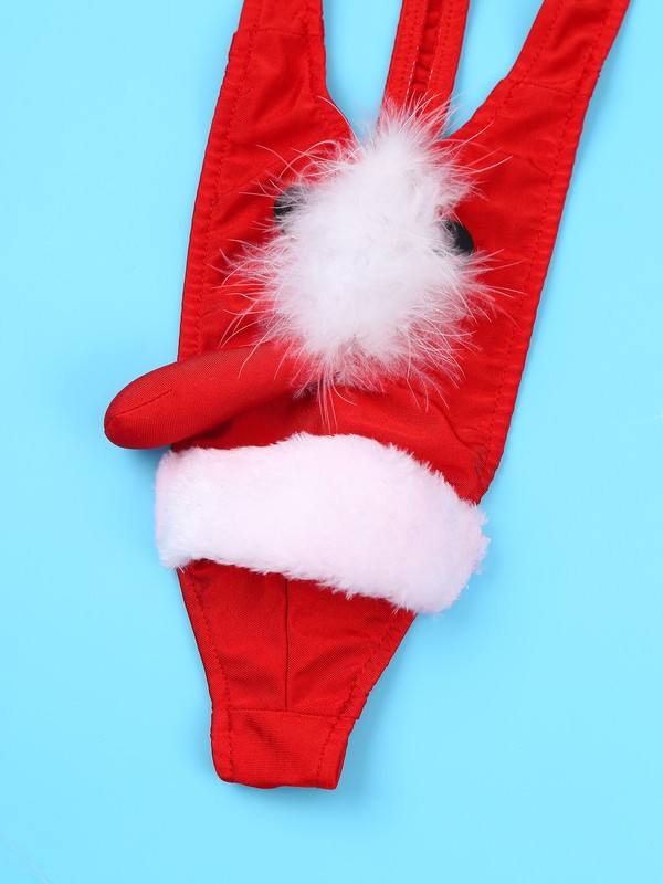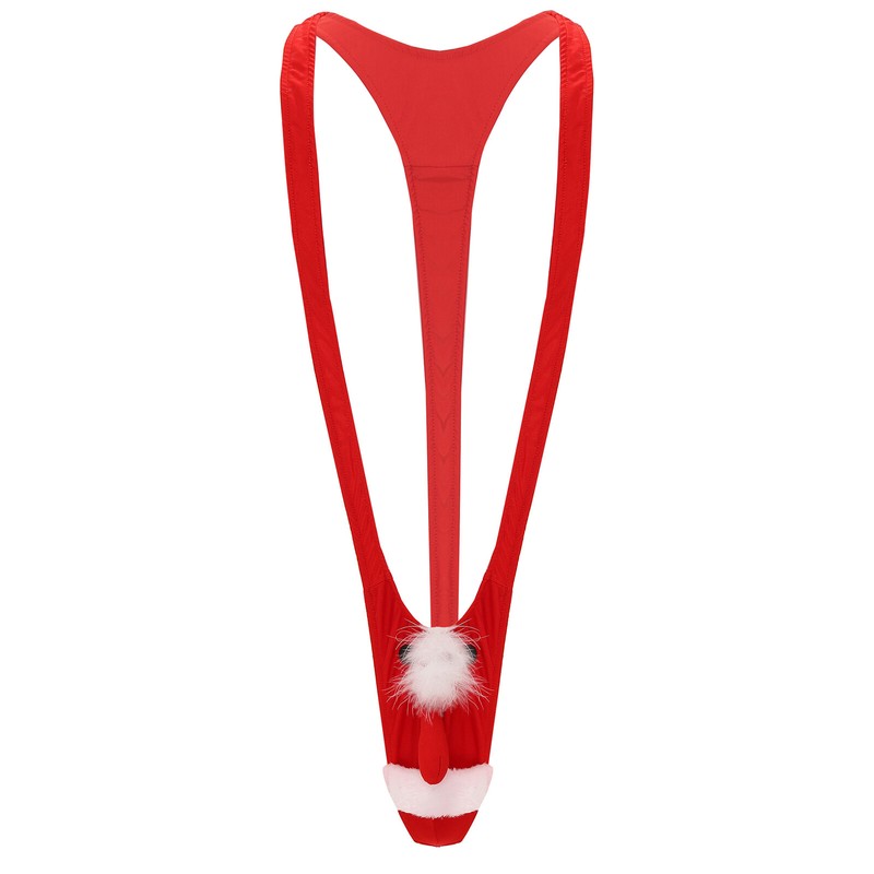 Men Christmas mankini thong novelty costume underwear, pull on closure.