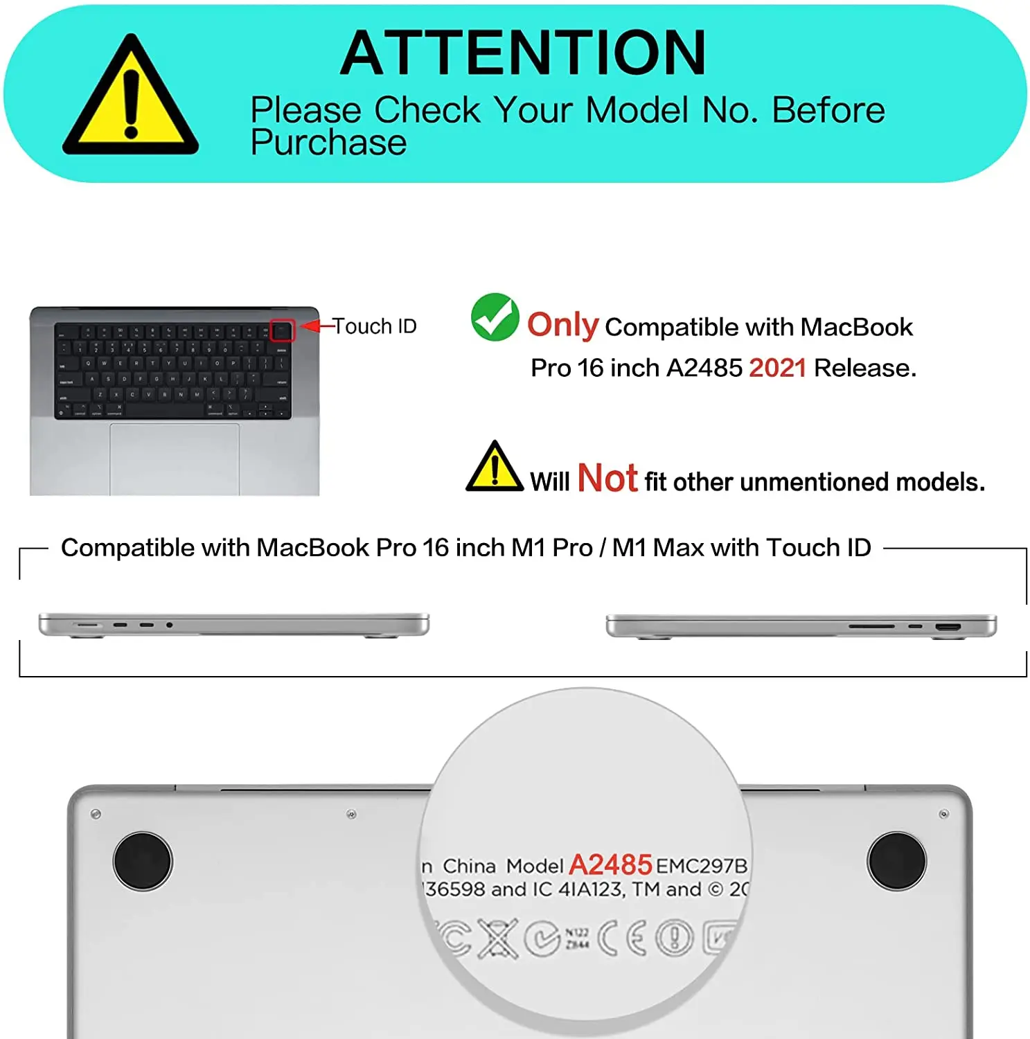 Designed to be compatible with MacBook Pro 16 inch 2023 2022 2021 Release M3 M2 M1 Pro / Max with Liquid Retina XDR Display & Touch ID (models: A2991 & A2780 & A2485. WARNING: This case is NOT compatible with other model laptops.
