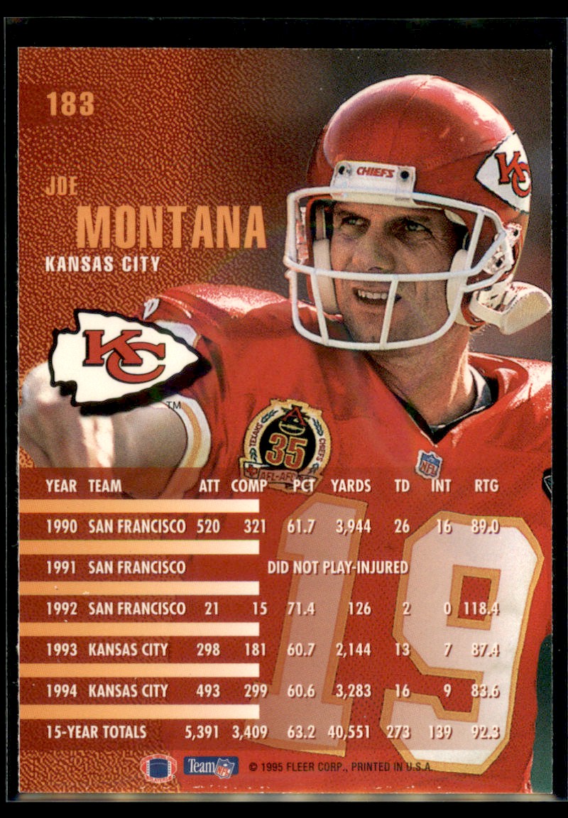 | 1995 Fleer Joe Montana Kansas City Chiefs #183 |