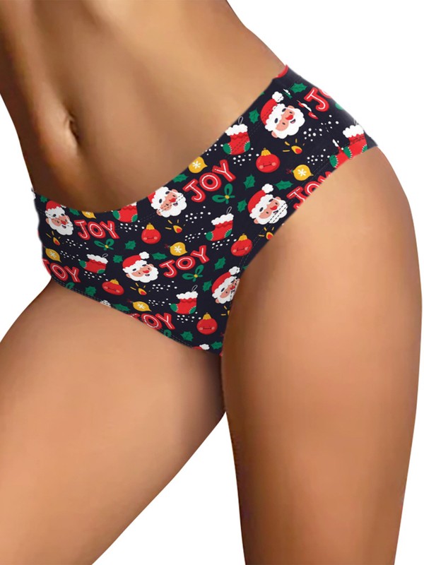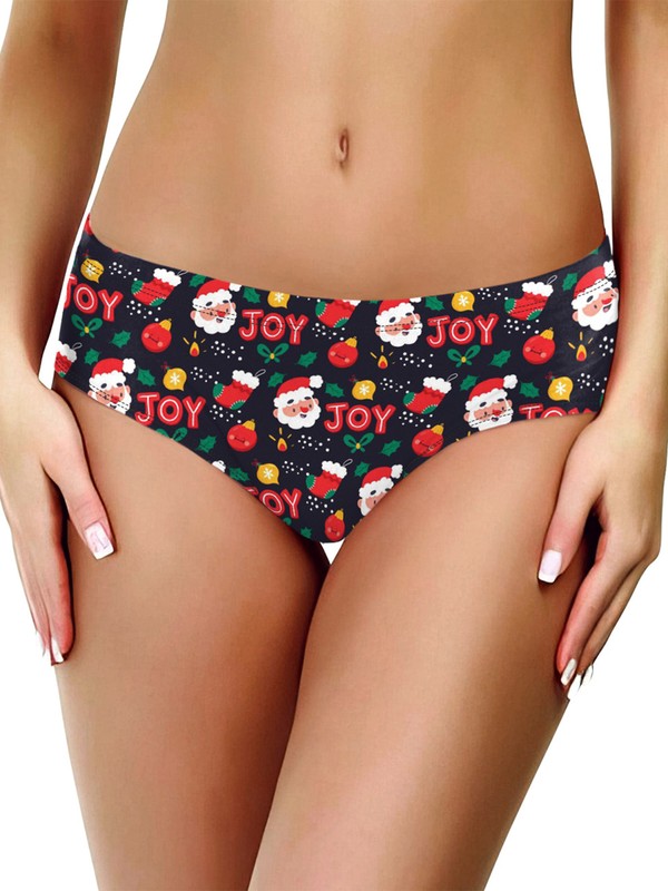 Low rise briefs for women, bright colors and Santa Claus/snowman prints fit the theme of Christmas.