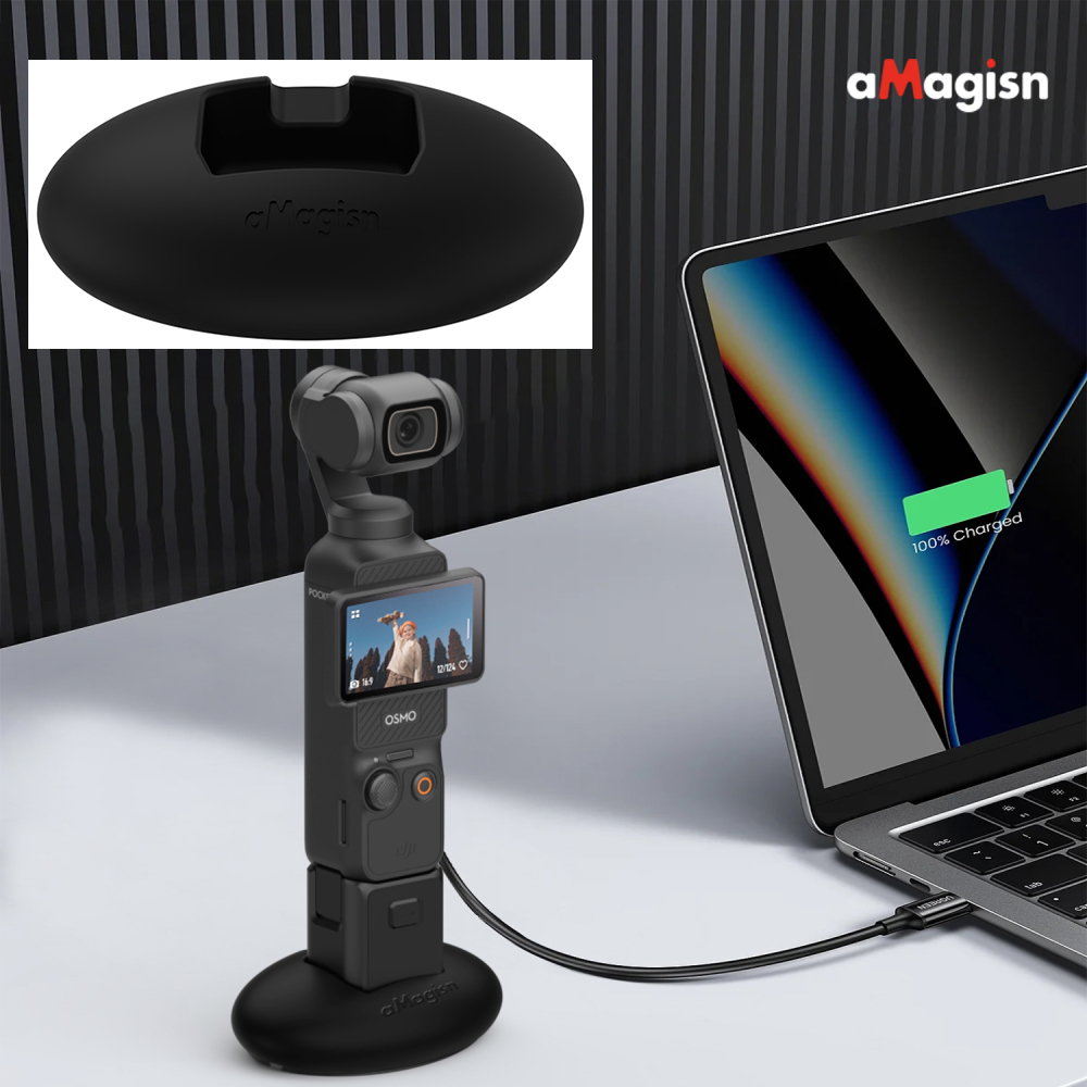 1. The silicone base allows Pocket3 to be placed upright on the desktop, and can also be placed upright on the desktop for charging and copying videos, making it simple and convenient