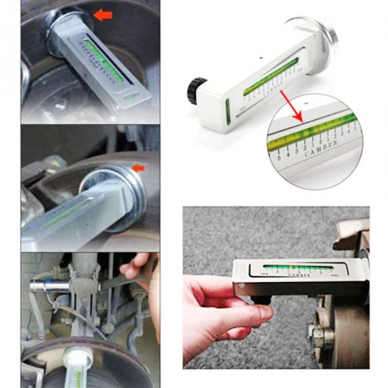Four-Wheel Alignment Magnetic Level, Horizontal Ruler, Camber Angle Adjustment Auxiliary Tool, Magnet Four-Wheel Alignment Level Product name: Four wheel alignment magnetic level Condition: Brand new Color: silver/black Material: aluminum Instructions for use: 1. Remove the four-wheel alignment sensor (clamp) and remove the tire; 2. Carefully attach the magnetic level to the side of the brake disc; 3. Adjust the level to zero; 4. Install the required special positioning parts; 5. Use special tools and use the degree indication of the magnetic level to adjust the positioning parts to the required measurement angle. 6. If you find a slight deviation when re-testing with the locator, just fine-tune it under the car. (Generally, a small deviation will not cause positioning failure).