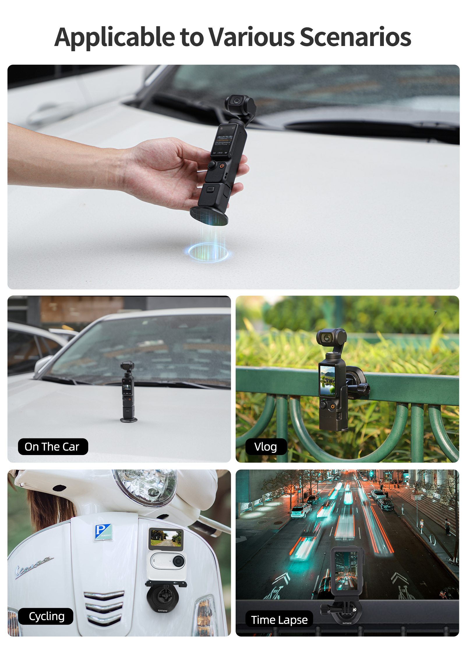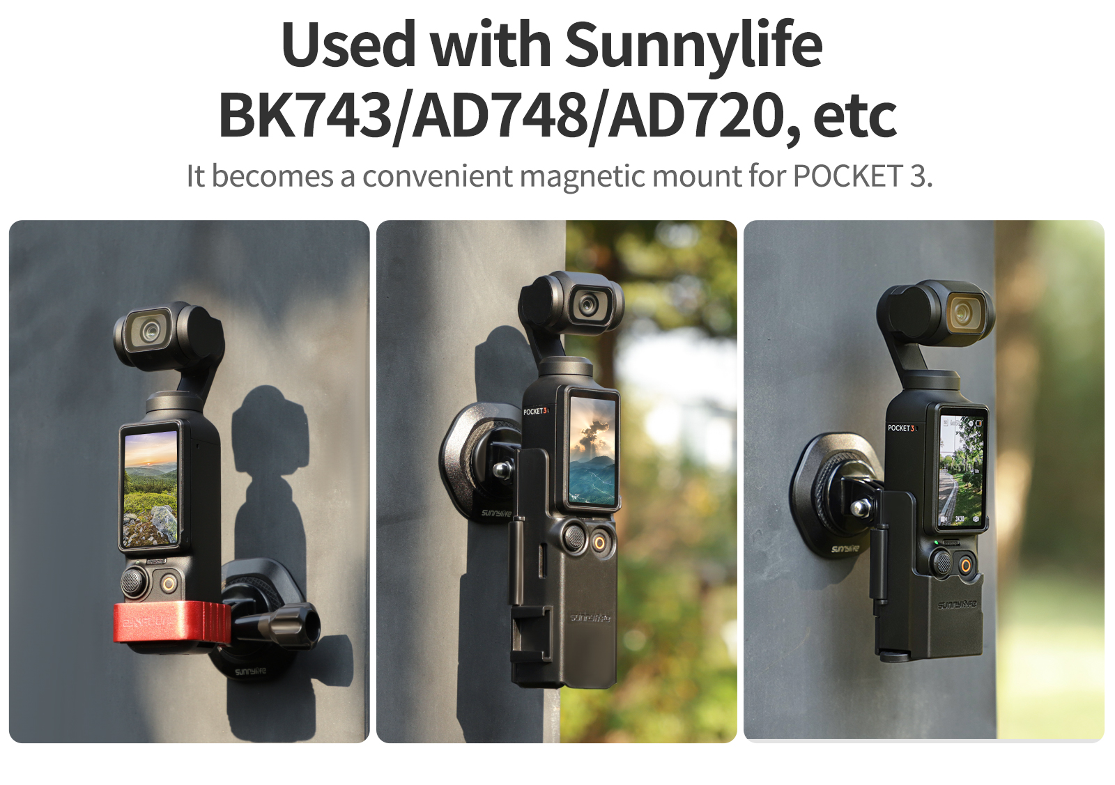 Use with Sunnylife BK743, AD748, AD720 and other adapters. Instant POCKET 3 magnetic suction bracket for quick adsorption and convenient use.