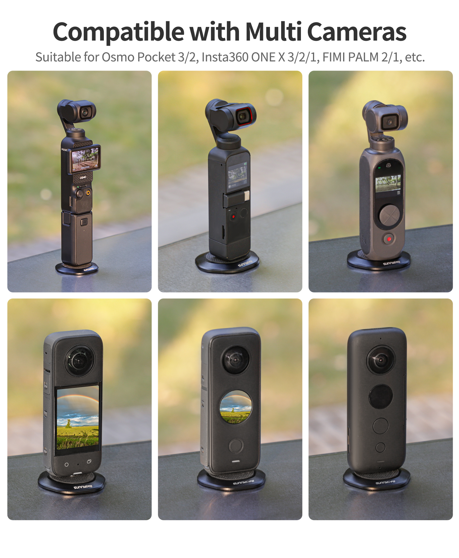 Can be used as a base for multiple cameras. Suitable for Osmo Pocket 3/2, Insta360 ONE X 3/2/1, FIMI PALM 2/1, and more.