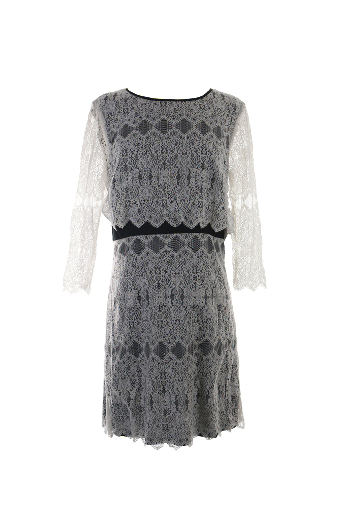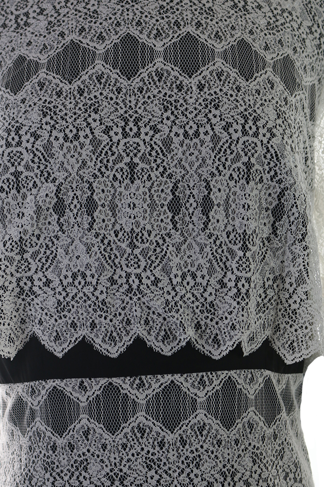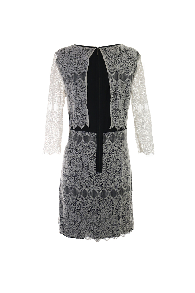 Kensie Womens White Black 3/4-Sleeve Layered-Lace Shift Dress M