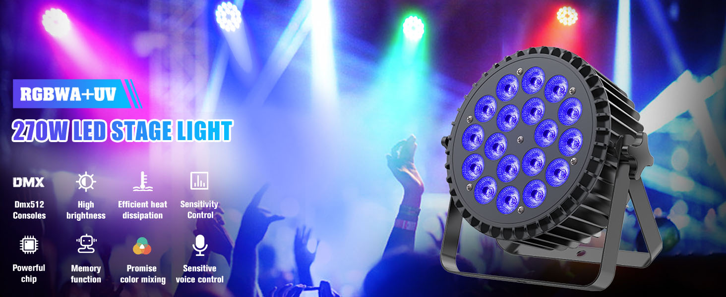 Light source: 18PCS RGBWA + UV six-in-one LED 15W lamp beads