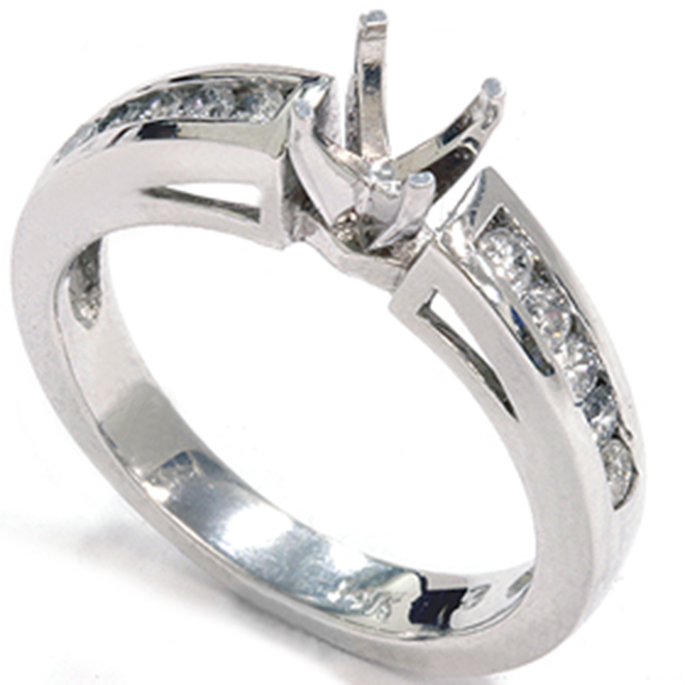 This classic diamond engagement mount features ten round brilliant cut natural diamonds. All diamonds are channel set in a solid 14k white gold setting. .50ct total diamond weight.