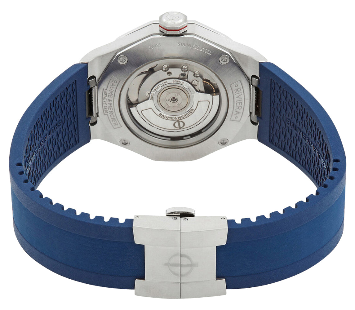 Like all of our watches, this Baume & Mercier Riviera Automatic GMT Blue Rubber Mens Watch is brand new and comes in its original packaging.