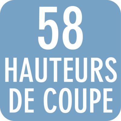 Nbre / hauteur coupe / Pas 58 hauteurs : 0,5 mm à 30 mm / Précision : 0,5 mm
