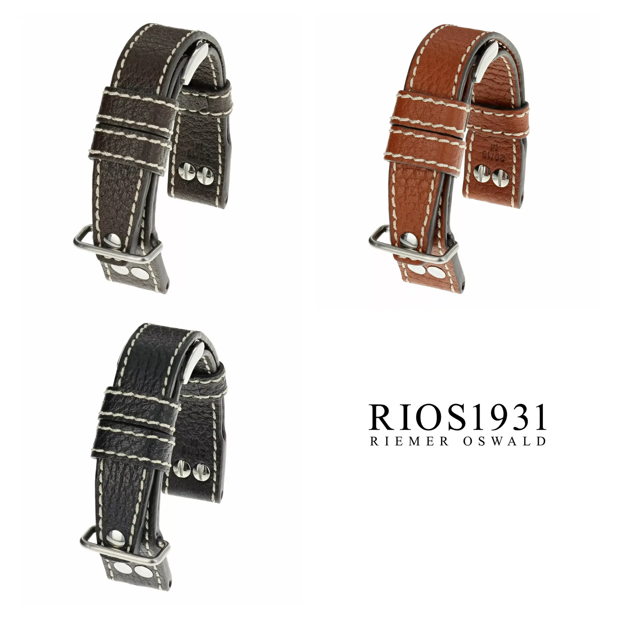Uhrenarmband (Büffel, strukturiert) von RIOS1931. Dieses Armband ist hergestellt aus Büffelleder und ist in 3 Farben und 20 mm und 22 mm Stegbreiten erhältlich. Schließe: Silber poliert.