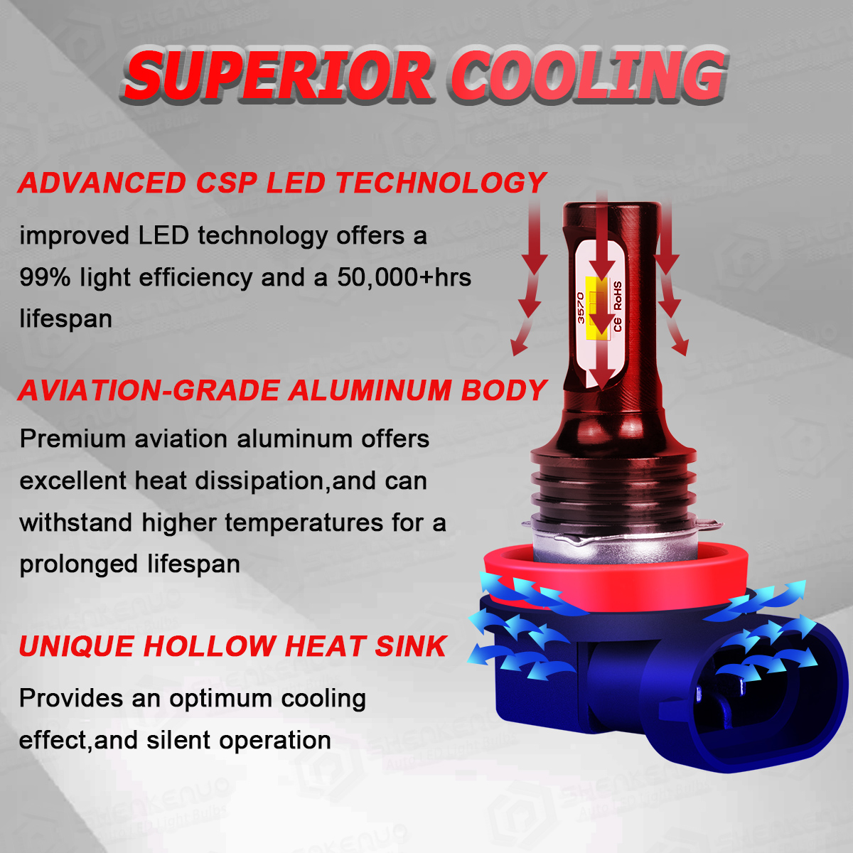 *Latest 3570 CSP chip light source, 2 luminous faces no blind zone