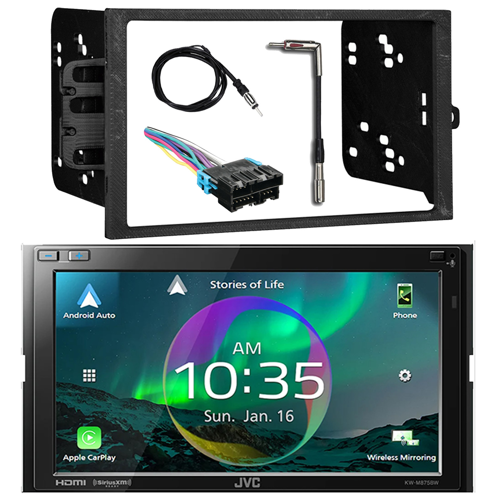 PACKAGE BUNDLE INCLUDES: JVC KW-M875BW 6.8" Clear Resistive Touchscreen Double DIN Bluetooth WiFi USB Multimedia Car AV Receiver, Metra Electronics 95-2001 Dash Installation Kit, Metra 40-GM10 Antenna Adapter, Metra 70-1858 Radio Wiring Harness, Enrock EKMR1 Radio 22" Black Antenna
