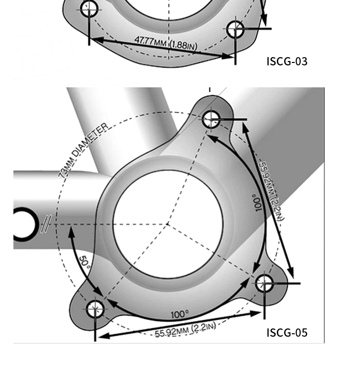 the mounting holes distance is 47.7mm for the ISCG 03 specifications