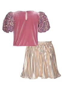 NEW Girls "PINK VELVET GOLD METALLIC" 2pc Top Skirt Outfit 12