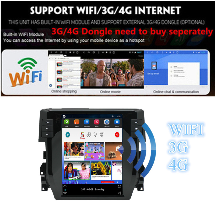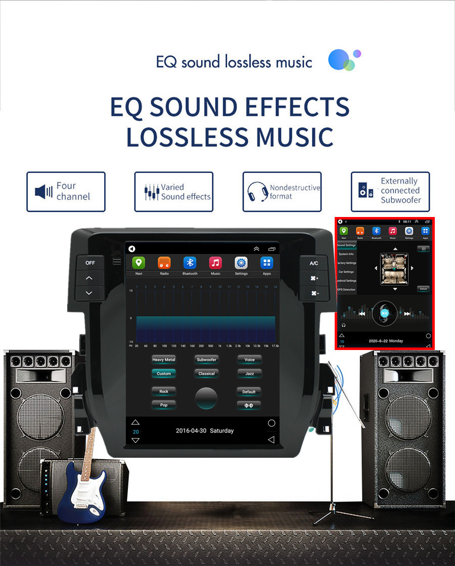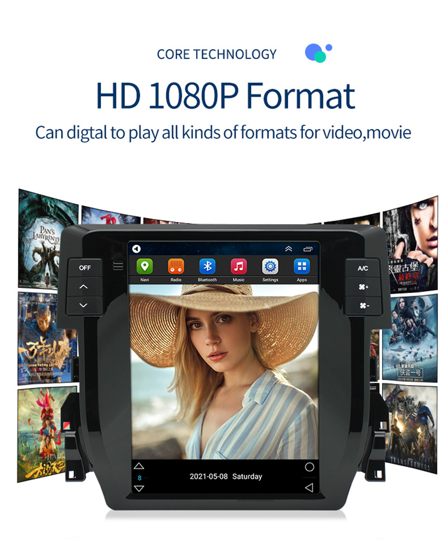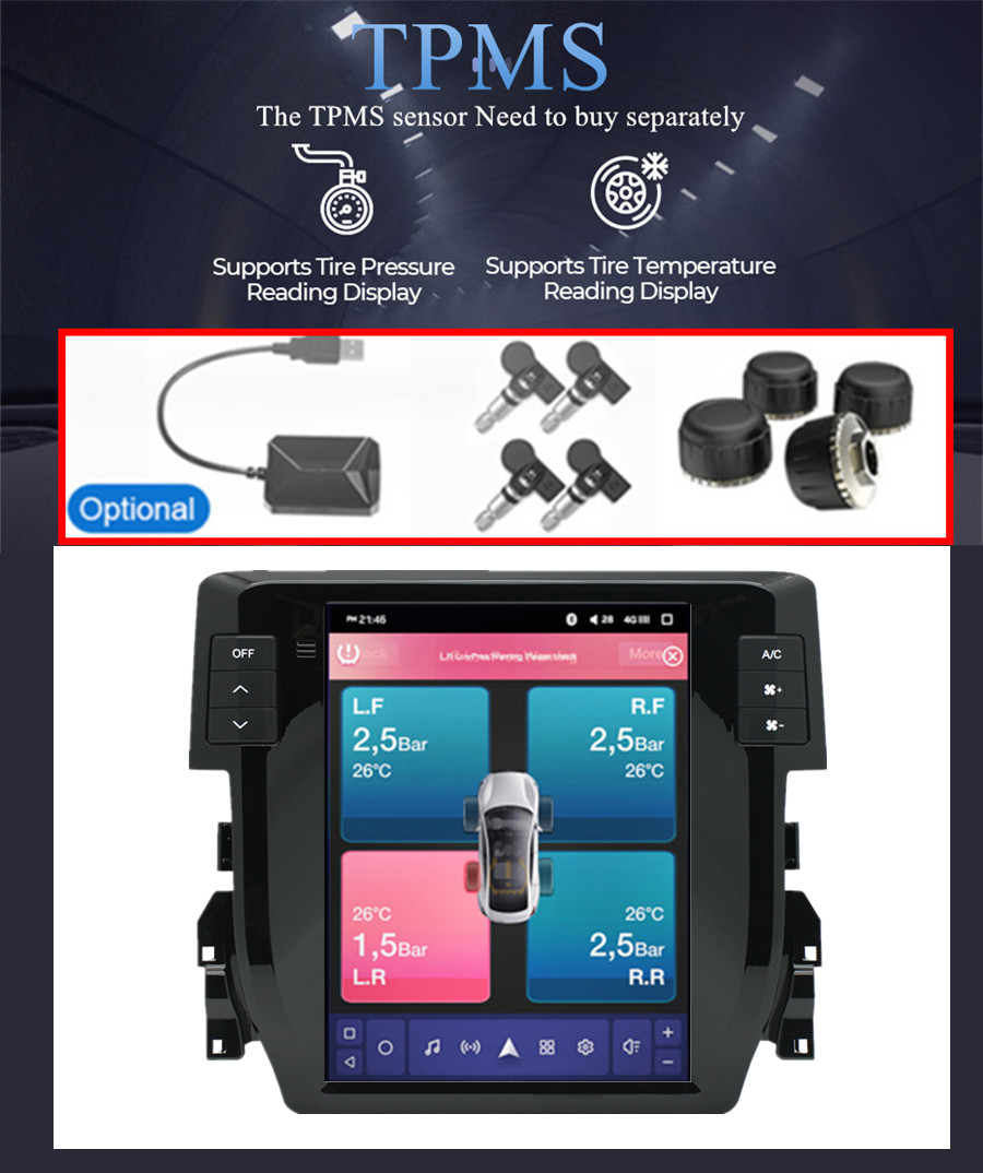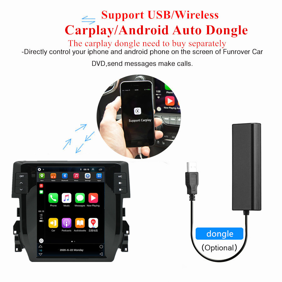Not fit for cars with factory amplifier - Screen Size: 9.7 inch - Front panel Size: As picture show - -For Honda Civic 2016-2020 - CPU: Quad Core - GPU: Quad Core - ROM: 16GB - Resolution: 1024*768 - Capacitive or Resistance Screen: Capacitive - Change Apps-Icon Position: Yes - Spilt Screen: Yes Split