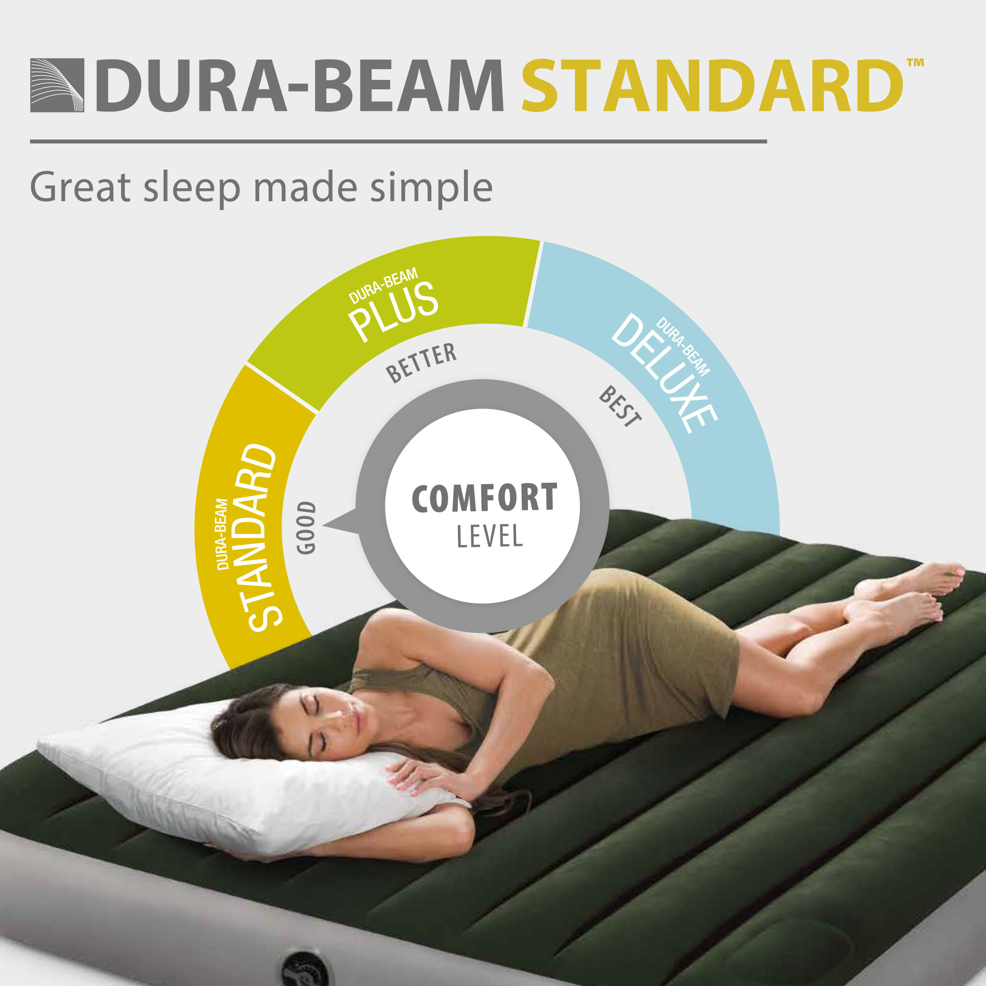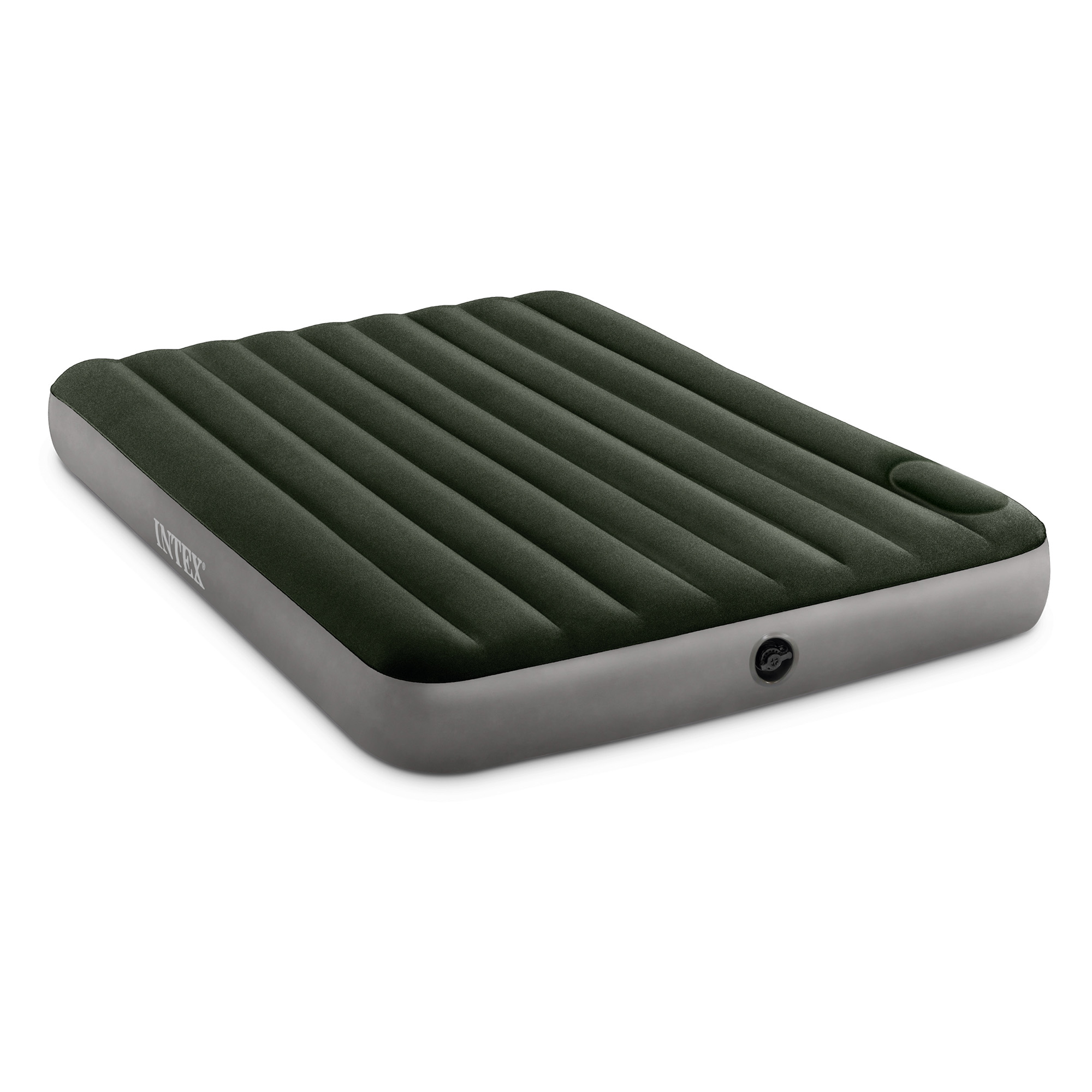 Get a comfortable night's rest wherever you are with this Intex 64763E Gray Standard Dura-Beam Downy Air Mattress with Built-In Pump in Queen Size.