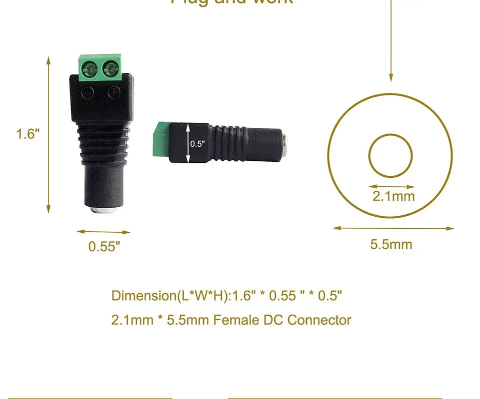 • 2.1mm x 5.5mm Plug Adapter:Compatible with a wide range of devices, making it a versatile connector.
