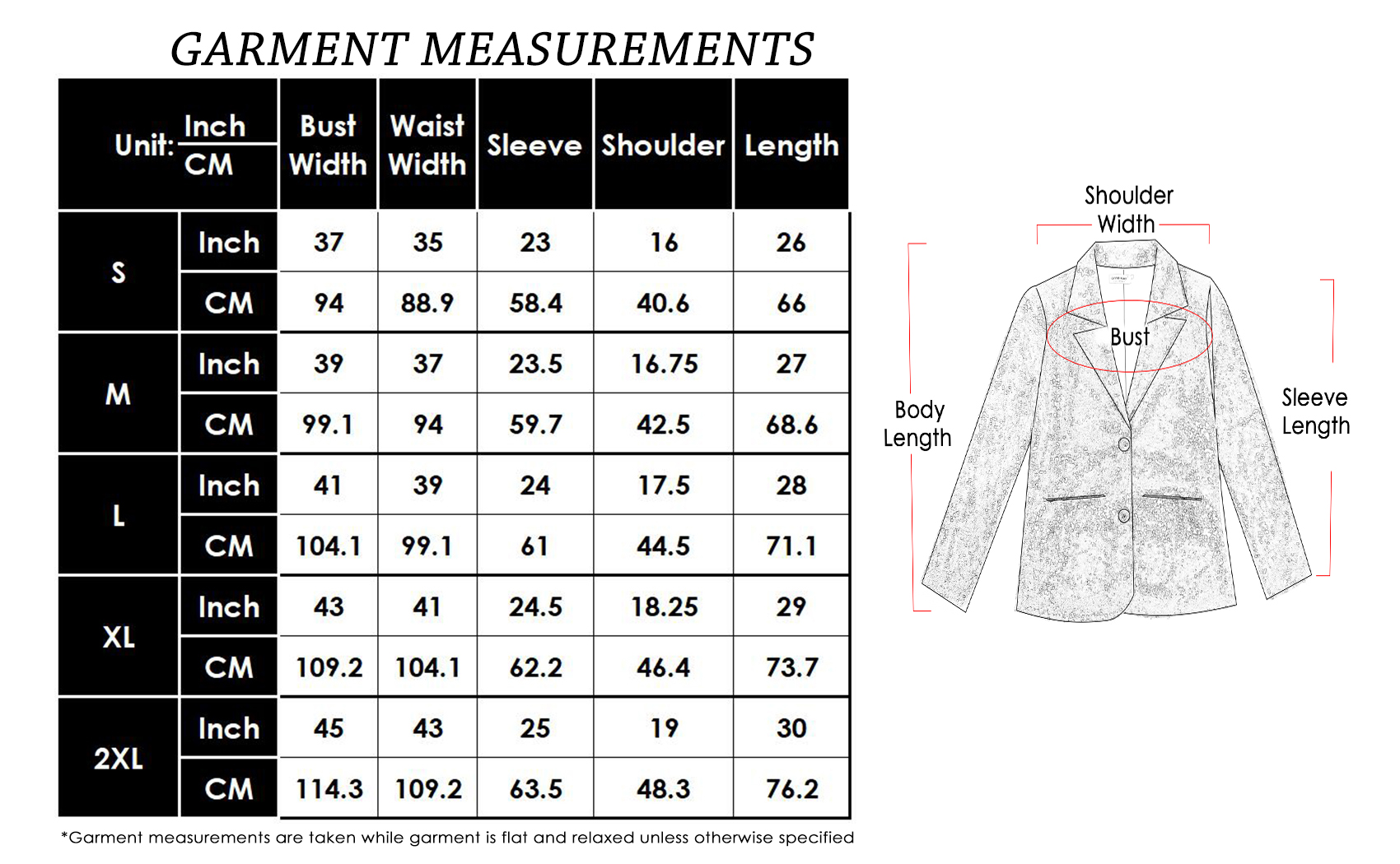 SIZING - Model wearing small size.Please refer to the garment measurement chart in the photos for help when choosing a size. If you have any questions regarding size and fit, please do not hesitate to contact us and our style experts can help guide you.