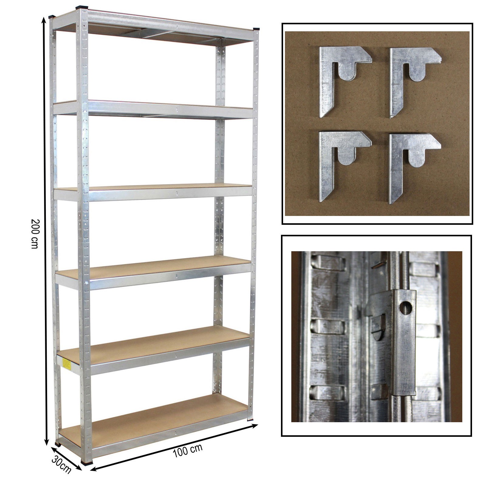 - Maße (HxBxT): ca. 200 x 100 x 30 cm je Regal