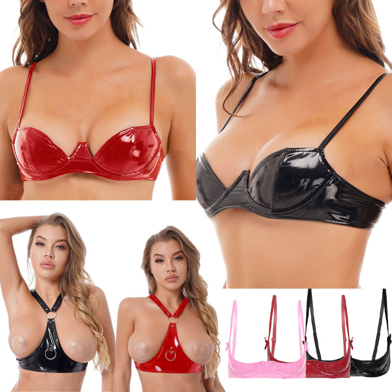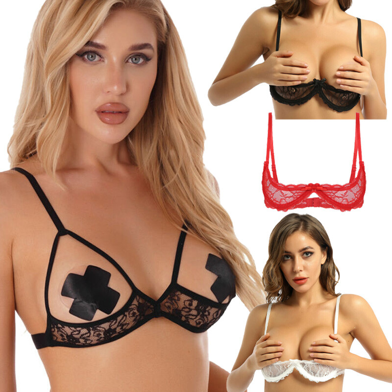 Womens Open Cups Underwired Bra Tops Adjustable Straps Sheer Mesh Brassiere Underwear.