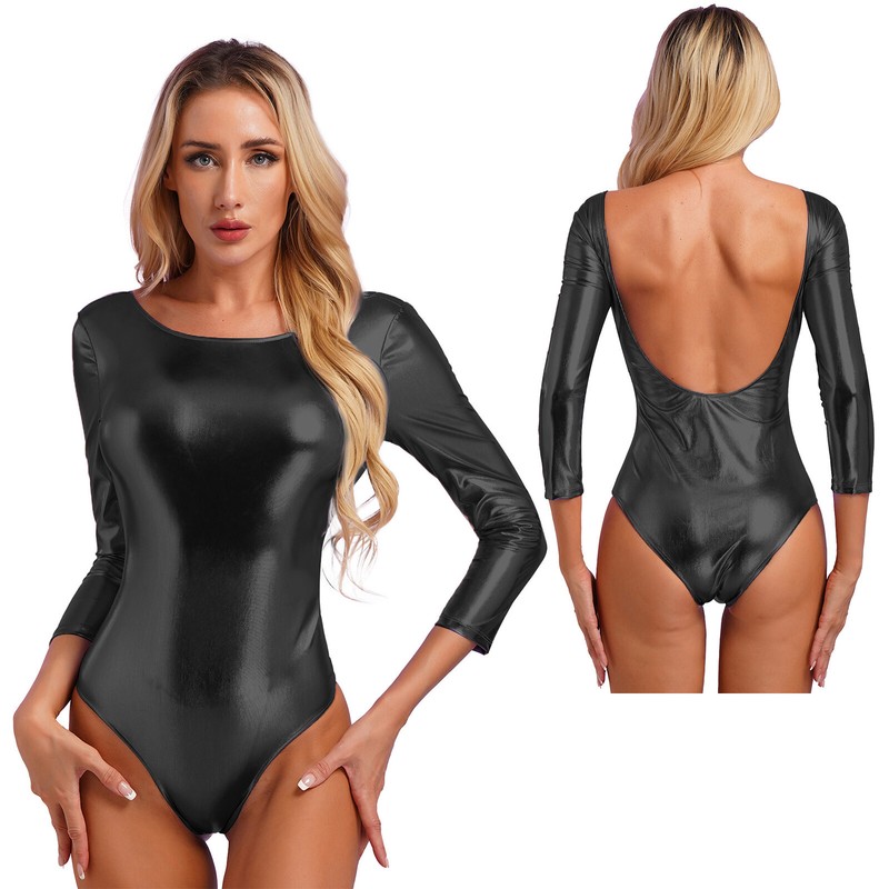Women’s bodysuit is designed with 3/4 sleeve, round neck, open back, high cut and slim fit, perfectly highlighting your curvy figure.