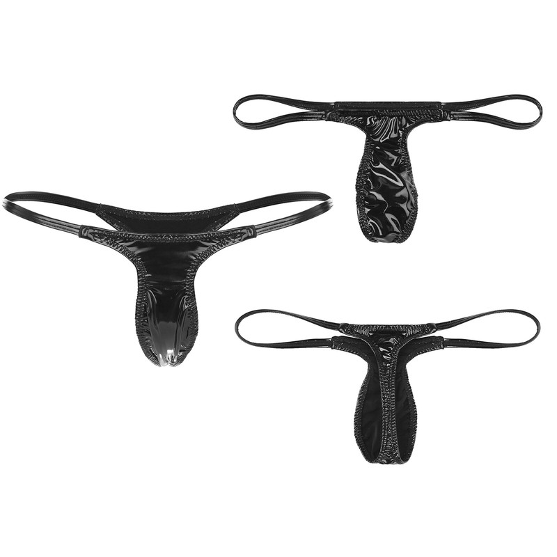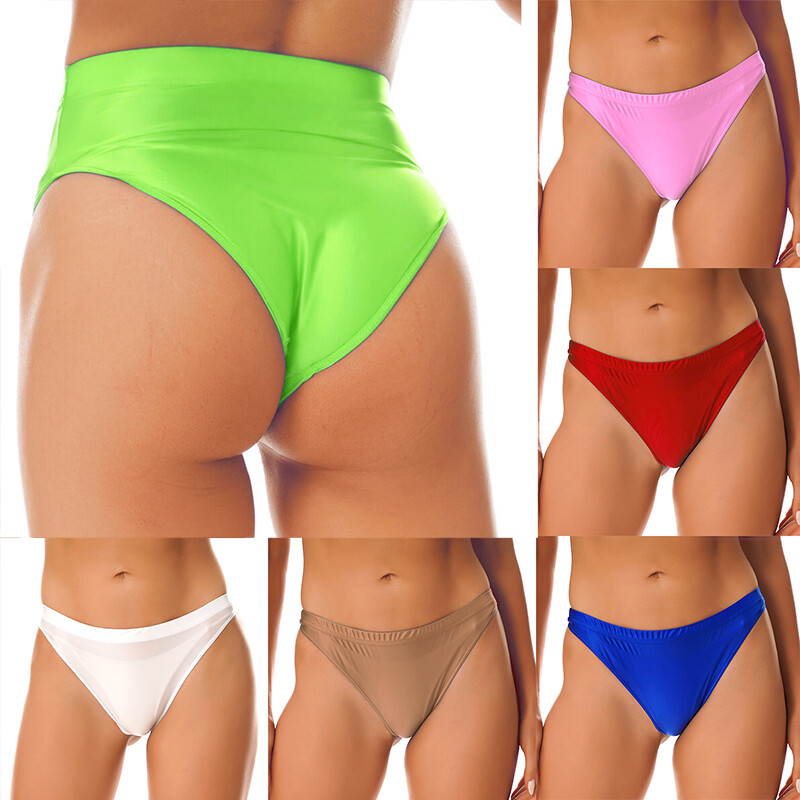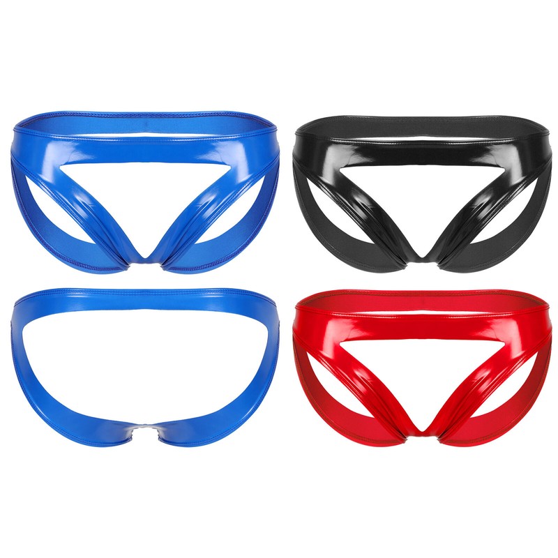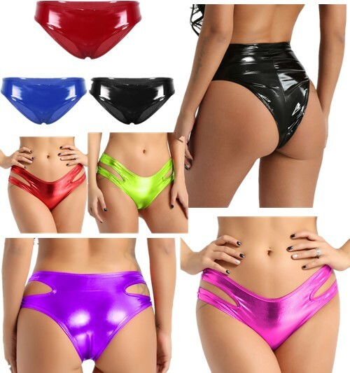 Womens patent leather bikini briefs underwear, stretchy fabric.