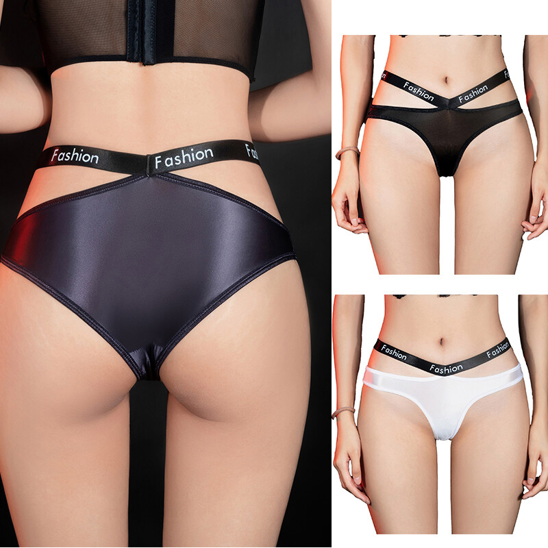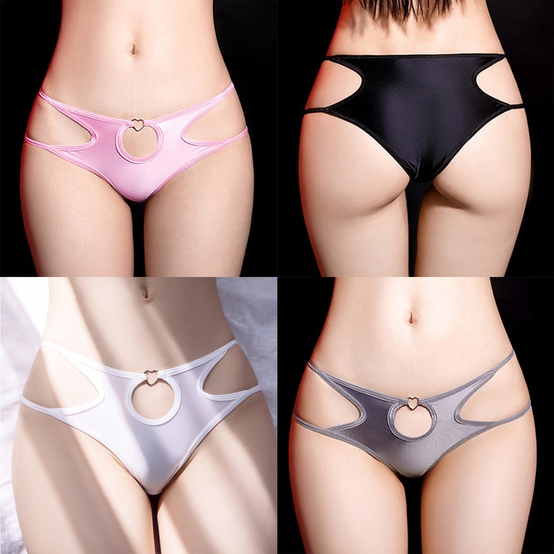 Women One Piece Clothing Smooth Surface Low Waist Mirror Emulsion Ammonia Solid Color Soft Heart Shape Buckle Briefs Underwear.