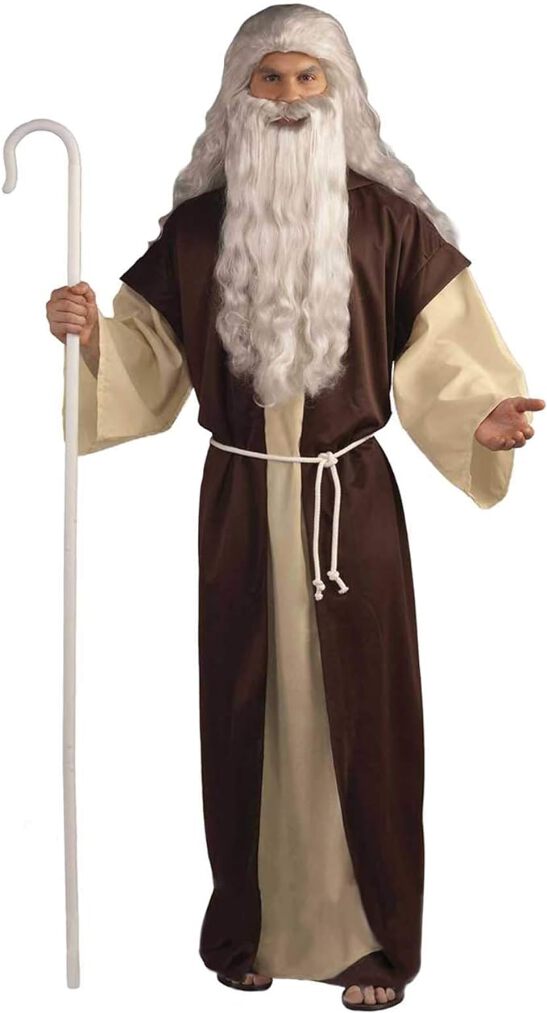 Perfect for your next costume party or nativity play, this Deluxe Shepherd Adult Costume will transport you back to biblical times. One size fits up to size 42. Includes: Robe with Attached Hooded Overcoat Rope Belt