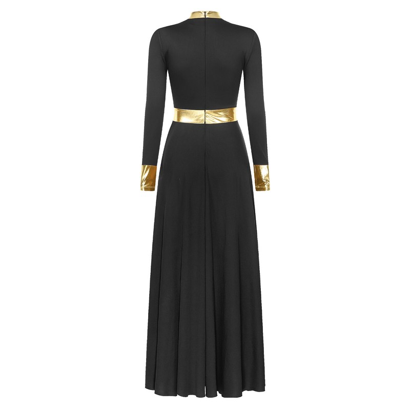 Long sleeve liturgical praise dance dress, mock neck, zipper back for easy wearing and taking off.