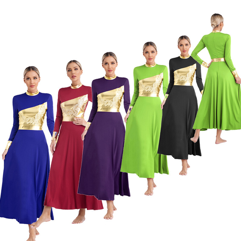 Praise dance dress for women, metallic shiny color block design brightens up any performance.