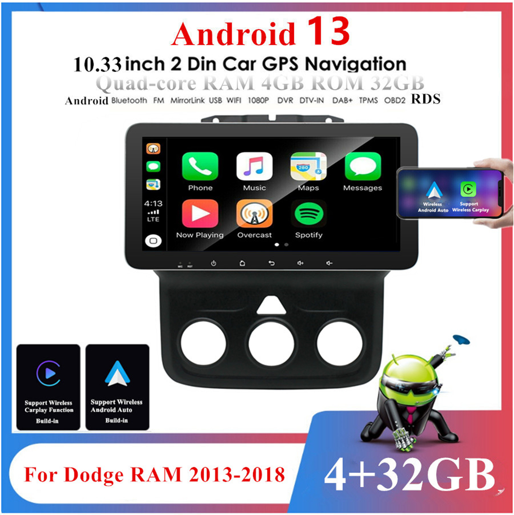 10.33'' Android 13 Build-In Wireless Carplay Android Auto 4GB32GB Car Stereo Radio GPS Navigation WIFI 3G 4G BT DAB Mirror Link OBD RDS For Dodge RAM 1500 2500 3500 4500 5500 2013-2018 Manual AC