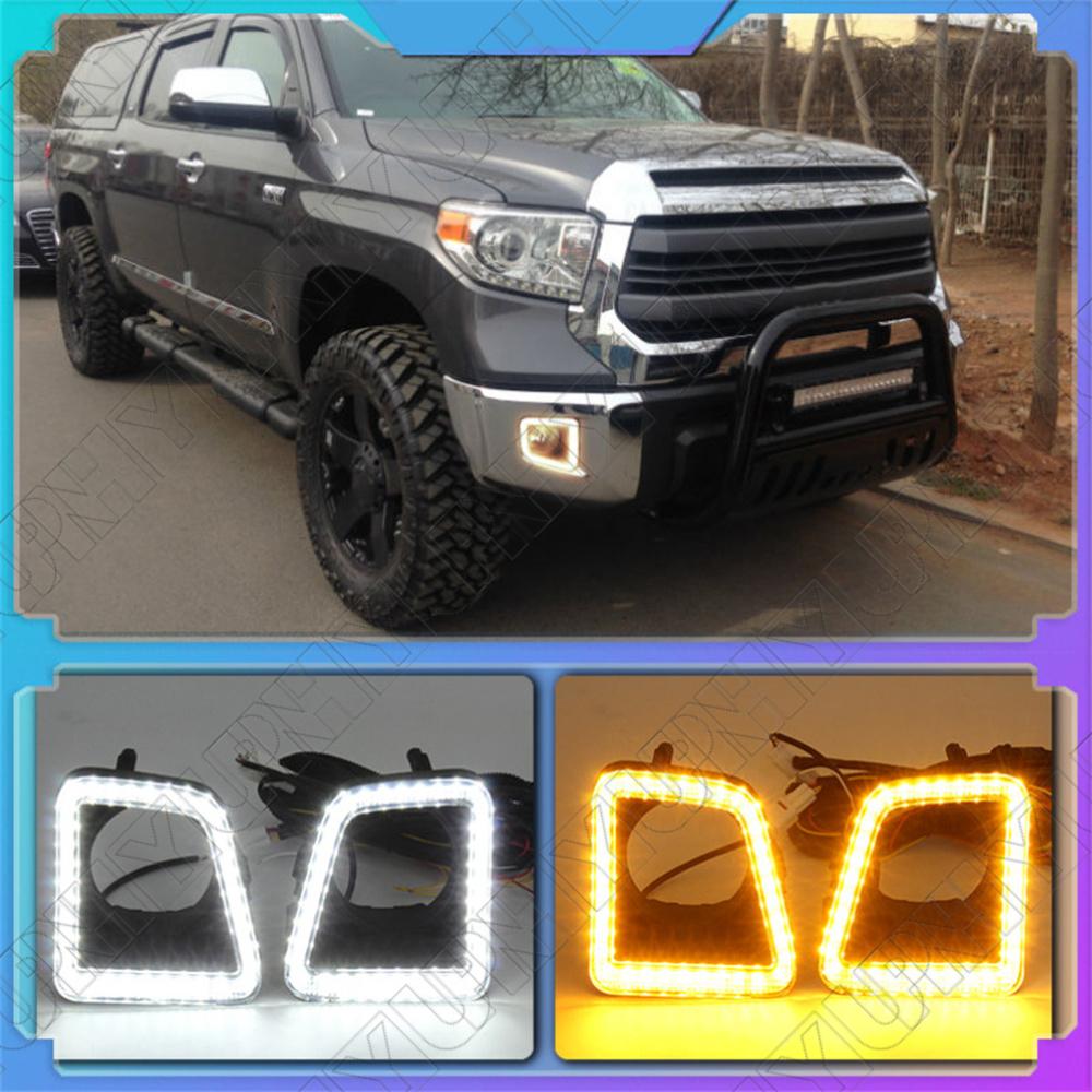2x LED DRL Daytime Running Light Amber Indicator White For Toyota Tundra 2014-20