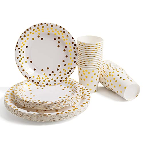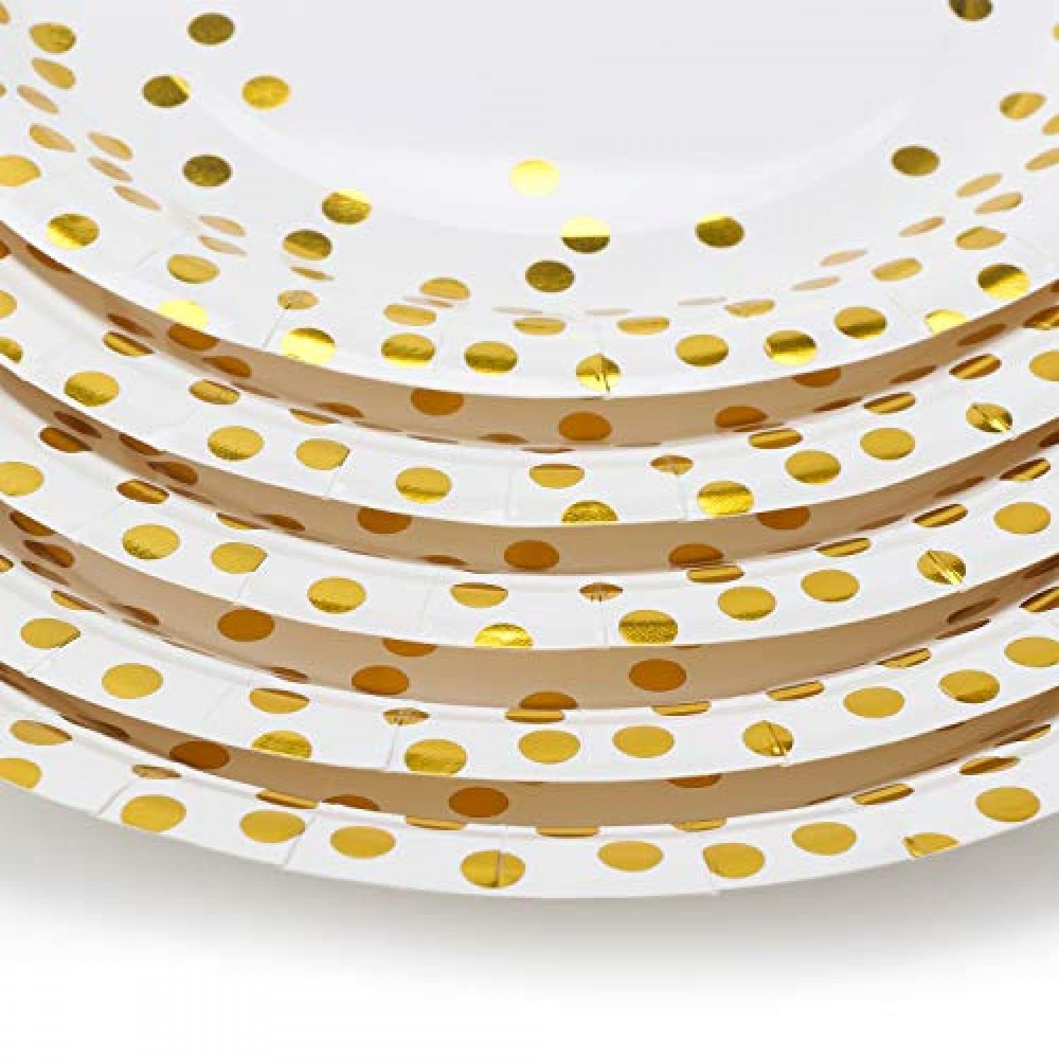 Gold Dot Dinnerware Set Plates 7 inch, 9 inch, 9oz cups, 50 Pack Each Party Supplies