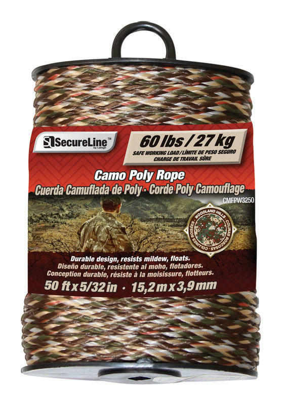 Ideal for camping, hunting, gaming, and other outdoor recreation activities. Innovative digital CAMO design complements sporting wear. Durable polypropylene design helps resist outdoor elements and keeps rope afloat in water.