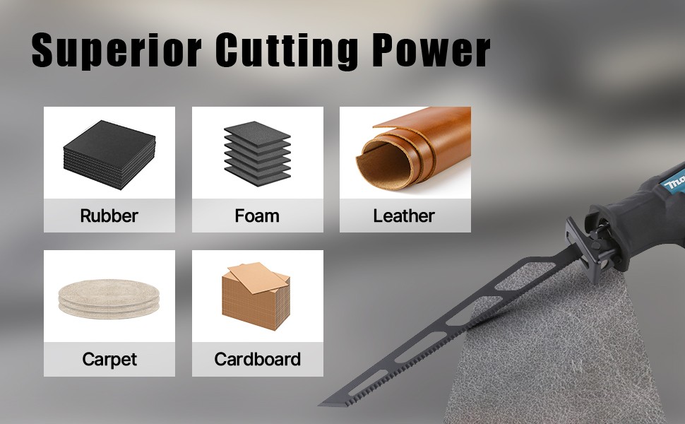 *Suitable for cutting fibre insulation materials, polystyrene, cardboard, carpet, leather and rubber