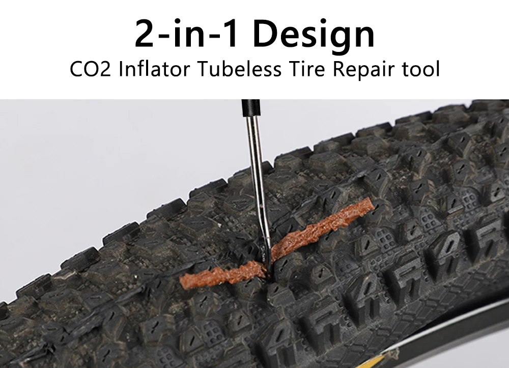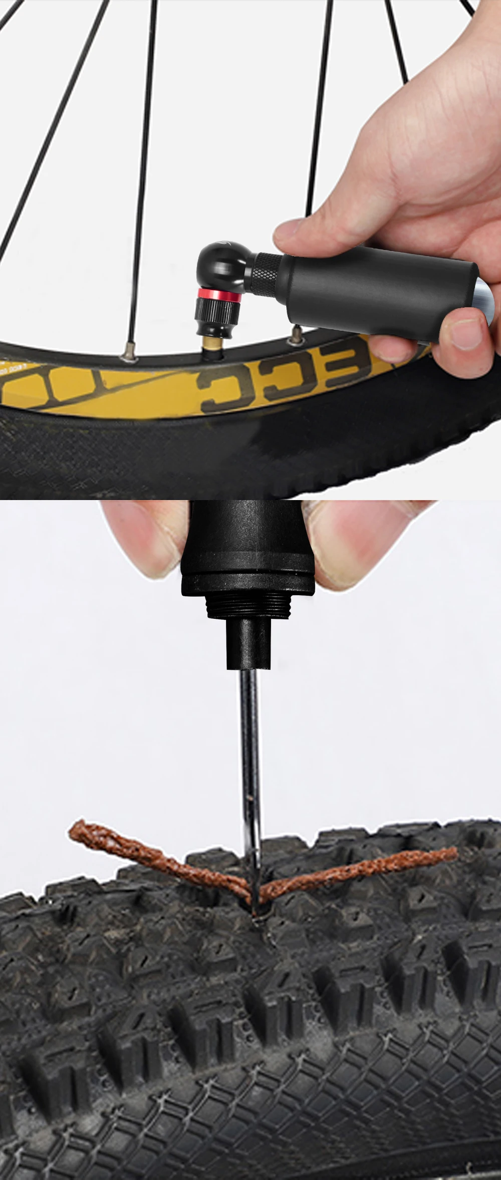 【FANTASTIC COMBINATION】- The unique design of 2-in-1, pumping function + tire repair function, is the perfect outdoor riding emergency equipment. There are 5 rubber strips, which are specially prepared for repairing tubeless bicycle tires. Even if the tire is accidentally punctured during riding, it can be repaired quickly, saving time and convenience!
