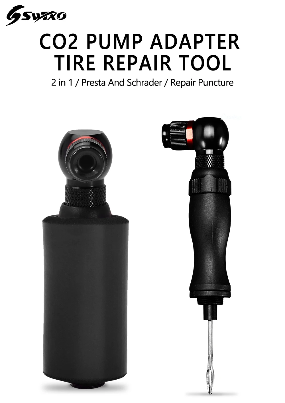 2 in 1 Mini CO2 Bike Pump Air Inflator Bicycle Schrader Presta Valve Adapter Bicycle Tubeless Tire Repair Tool Portable Hand Pump