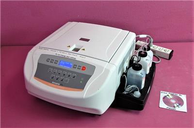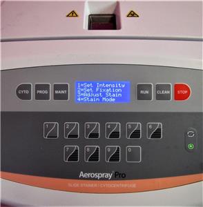 Very nice Elitech Aerospray Pro 7151 Cytocentrifuge Slide Stainer System in excellent cosmetic and power tested working condition. This unit is listed for parts or repair as the rotor is not included and some of the jets are missing. Three of the four staining cartridges are included and the pumps have been tested to work. The digital display is clear and the controls to program the unit are working. The audio alarm is working as it should. Normally used for Hematology CBC but also suitable for Histology and other applications where automatic slide staining is applicable. All 4 stain bottle caps and tubing are present. Will require a rotor, jets and stain pack before it can be used. May be an easy fix for someone with the knowledge of this unit.