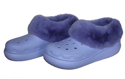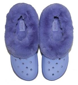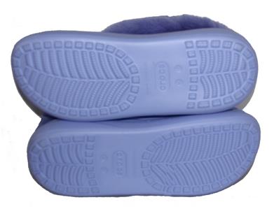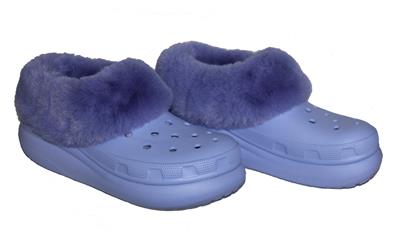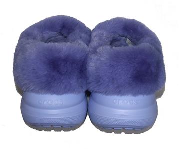 Crocs Furever Crush Two-Tone Lavender Shoes. Super soft faux shearling fully lined interior. Holes are covered with interior lining. Increased heel capture for additional support and comfortable fit. Fully molded Croslite upper. Approx. 2-1/2" heel. Heavy duty, made to last. Men's 11.