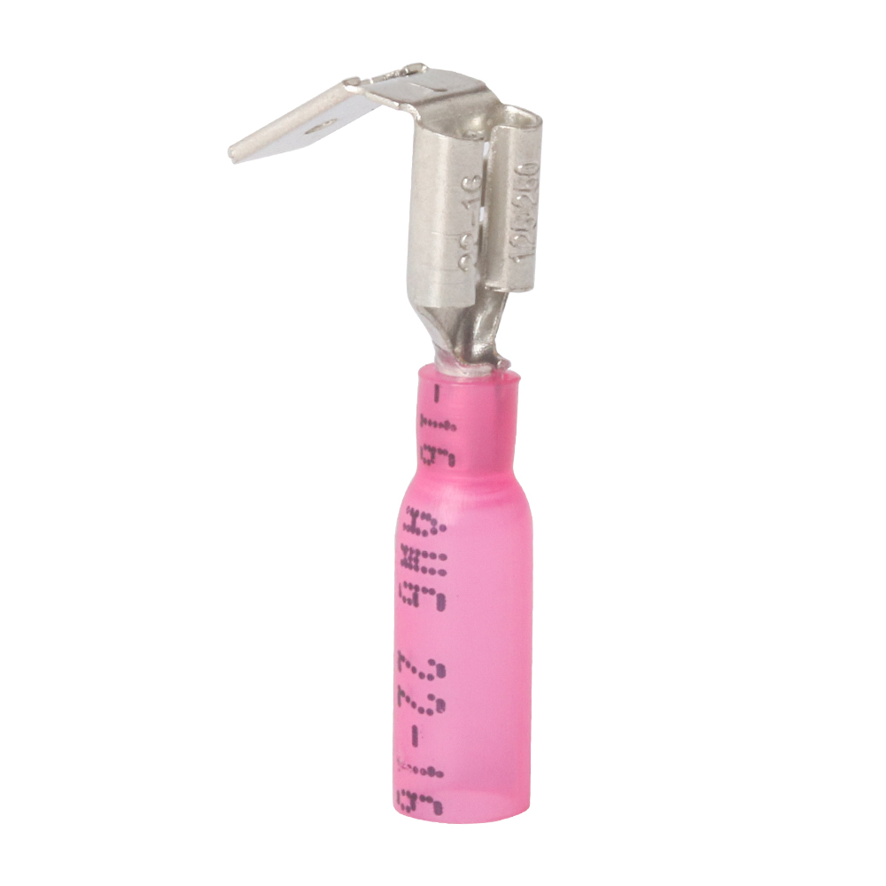 Heat shrink insulation fully seals the terminal from the elements and is the most advanced insulation type for connectors on the market. Heat activated adhesive lining seals the connection point protecting the piggyback connector against corrosion and water damage. This adhesive also bonds the terminal to the wire insulation, which provides the piggyback spade connector greater strength when compared to vinyl or nylon terminals.