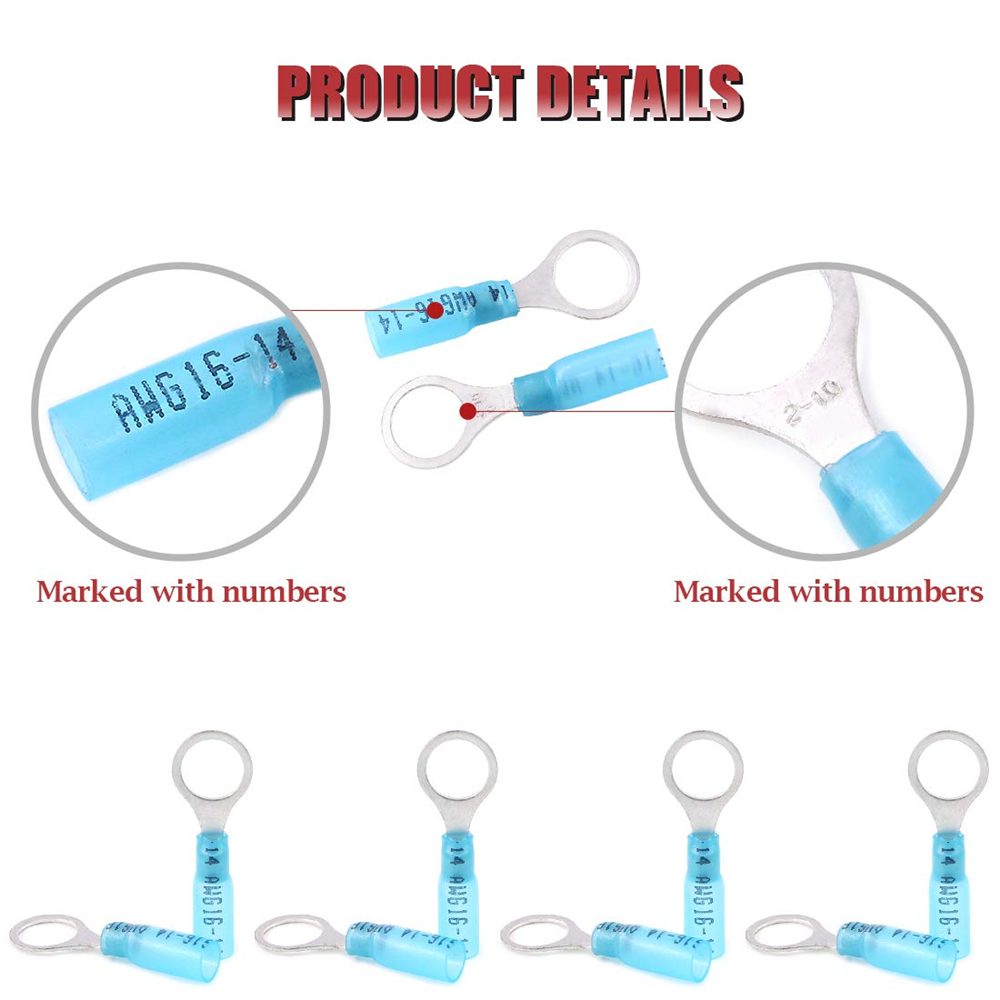 EASY TO OPERATE - Wire gauges and color identifications imprint on wire connectors. You can choose the right size ring terminals according to your needs. Ideal translucent material provides vision for you.