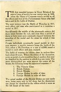 Ribbons and Decorations awarded for HONOURABLE SERVICE in the WARS of Recent Years.