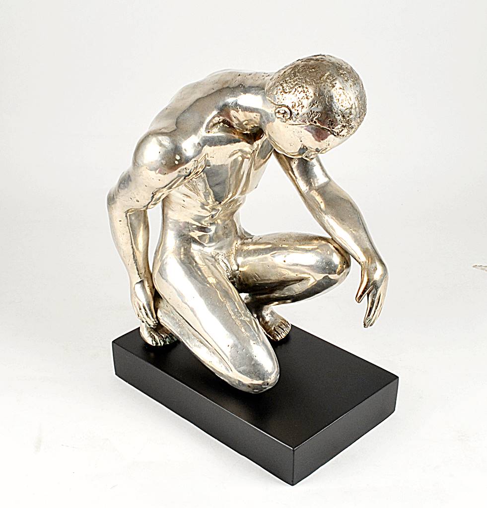 Ästhetische männliche Akt-Skulptur aus Metall, silberfarben H ca. 35 cm
