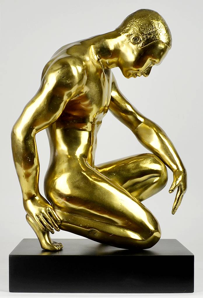 Ästhetische männliche Akt-Skulptur aus Metall, goldfarben, H ca. 48 cm
