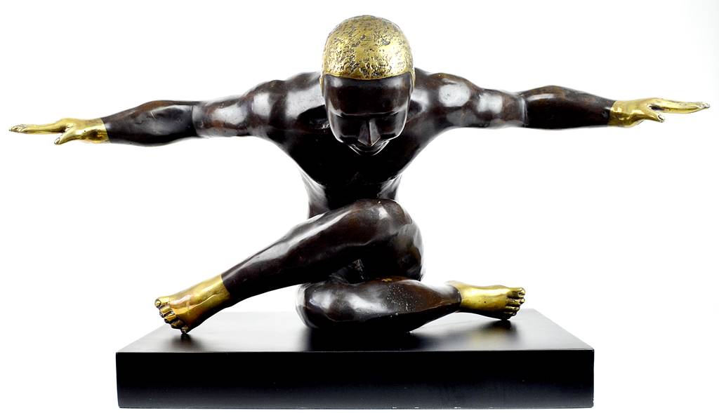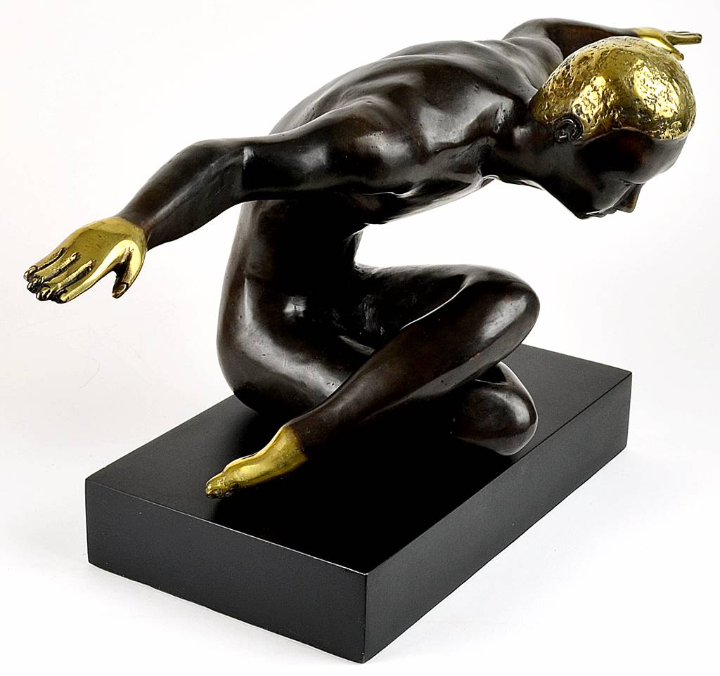 Ästhetische männliche Akt-Skulptur aus Bronze, H ca. 30 cm
